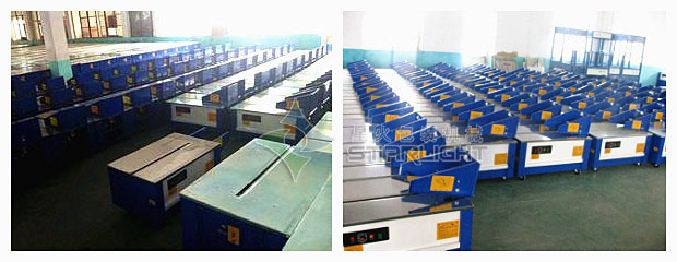 設備特點:低臺半自動打包機采用自動電熱熔接,捆扎速度快、省時省力、接口平整牢固,能提高產品包裝外觀的檔次。低臺半自動打包機主要用于電子、職業、煙草、陶瓷、食品、醫藥、書刊、發行等行業的紙箱、木箱、紙包件、布包件的包裝捆扎。紙板打包機捆緊力度,出帶長短都可調,靈活適用于諸多行業捆扎使用。 企業倉庫: